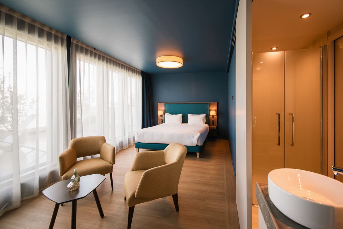 Votre Suite Junior, avec ses 26 m² d’espace intérieur et une terrasse généreuse de 20 m², représente l’apogée du confort lors de votre séjour à Nantes. Alliant quiétude et élégance, cette suite est l’incarnation même du raffinement et n’attend que votre présence pour parfaire votre expérience.